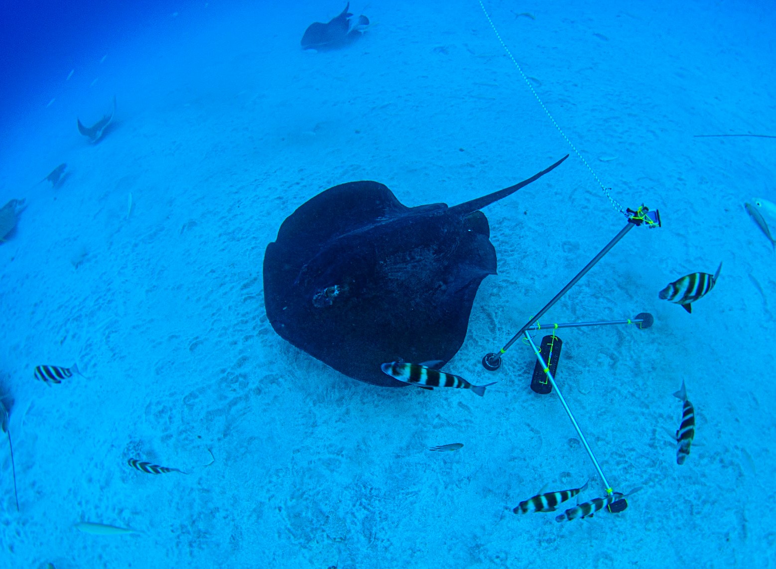 « We started a pilote study in 2019 to sample deeper waters using Baited Remote Underwater Video. Two original benthic BRUV structures were designed and manufactured at the Instituto do Mar (IMAR). The BRUV’s are made of three weighted feet like a tripod which lands on the sea floor, equipped with two cameras, these structures were designed to estimate the abundances and species richness as well as identify and measure bull rays. The final BRUV’s were made of two cameras, one fixed at the intersection of the two front feet filming forward, to record any marine life passing by the bait and one on the top of the structure facing the sea floor, to record the dorsal patterns and identify individuals, the two front feet of the structure also provides a scale to measure individuals. The new benthic BRUVS were tested during the field work expeditions of the summer 2019 in Tenerife and Malta. One full structure was sent to each study site (Malta and Tenerife) respectively.The benthic BRUV showed a remarkable stability underwater and during the drop-down from the boat, even the largest benthic fauna would not compromise the stability of the structure. The FOV recorded by the top camera was optimised, keeping a reasonable size of the structure for handling in a boat. The “tripod like” structure was made dismantlable to facilitate handling in the boat and on land.”